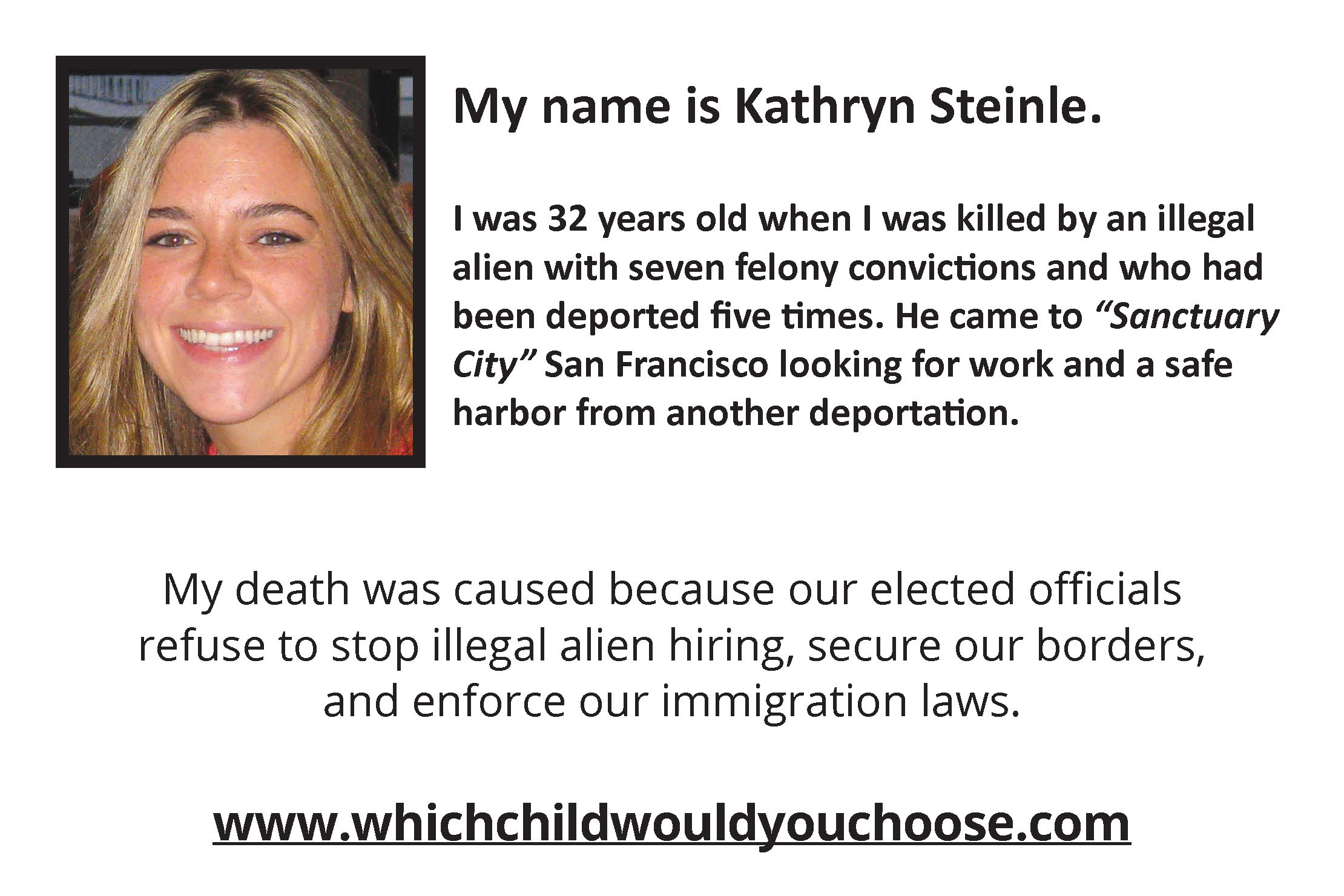 This heart wrenching chronical of the "True Victims of Illegal Immigration" and the corrupt system that by design has drawn millions of illegal aliens into our country was produced to be a catalyst for change. It is our hope that viewers come away with a purpose. That purpose being to join in our efforts to stop illegal immigration so no other families suffer the loss of their loved ones because our elected officials refuse to secure our borders and enforce our immigration laws. TAKE ACTION