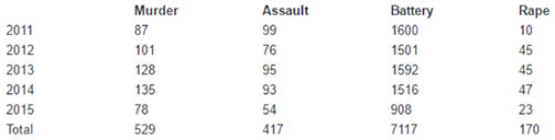 According to the data provided by the Sheriff's Department, arrests for violations of the most violent of the crimes listed – murder and rape -- have soared over the past four years: